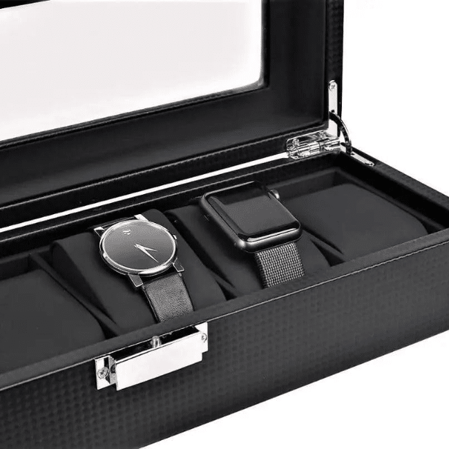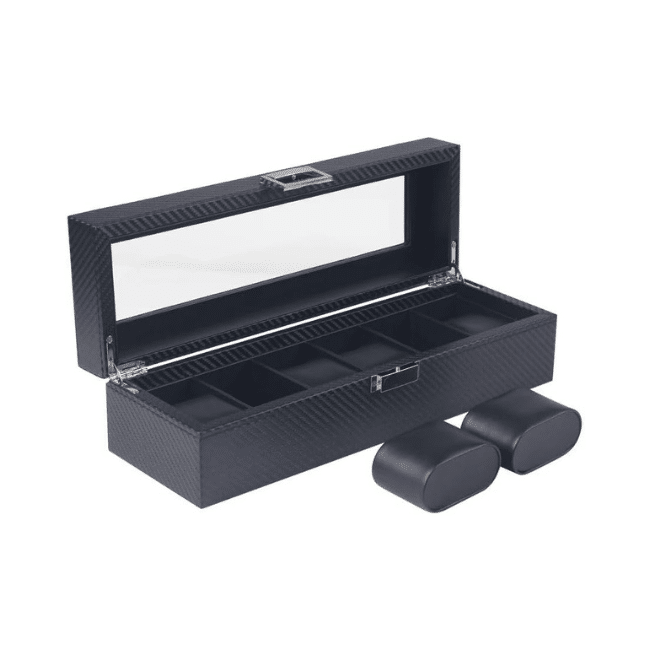 Luxury Carbon Fiber Leather Watch Box -Watch Display Case Holder Storage Organizer Jewelry Display- 6 Slots